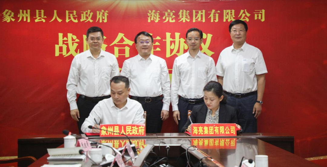 11月8日,象州縣人民政府與海亮集團舉行戰略合作協議簽約儀式。來賓市委常委、統戰部部長蔣衛生,象州縣委書記張東,縣委常委、副縣長石寶璠,副縣長黎裕寧,海亮集團副總裁、明康匯生態農業集團董事長詹天浩,海亮鄉村教育振興集團董事長辛穎、副總裁汪旭紅出席。